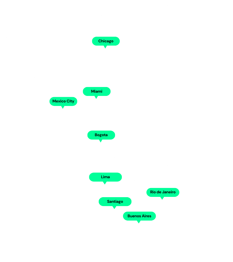 Our network spans seven key markets across the Americas, enabling true local-to-local fulfillment. With production facilities in Chicago, Miami, Brazil, Argentina, Colombia, Chile, and Mexico, we eliminate international shipping costs and import duties while ensuring rapid delivery to your customers.