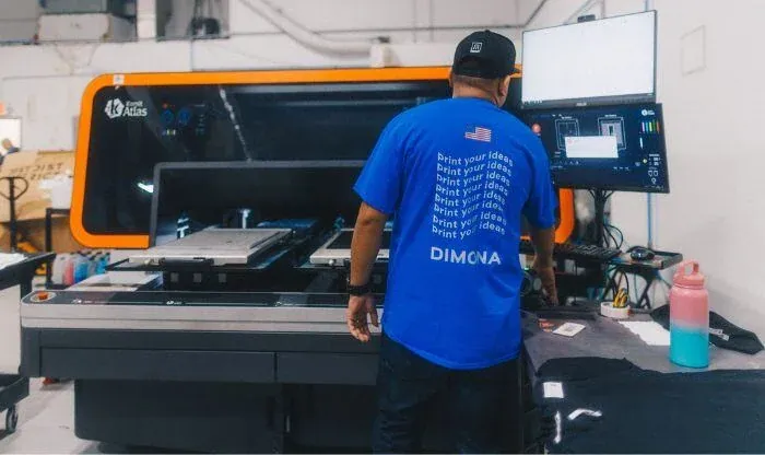 Print on Demand (POD) is a production model where items are only printed after a sale is made. At Dimona, we offer high-quality DTG, DTF, and embroidery printing, seamless e-commerce integration, and direct shipping to the end customer—no inventory needed.